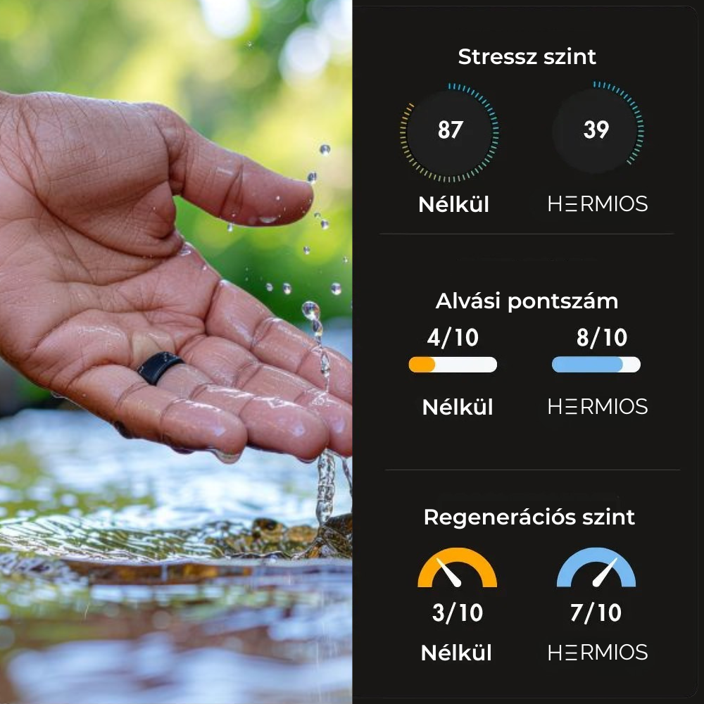 Igen. A Hermios teljesen vízálló – viseld zuhanyozás közben, az óceánban, edzés vagy úszás közben. Aktív életmódra készült.